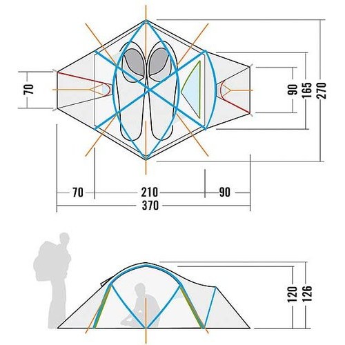 В палатке используется пятая дуга, натягиваемая над одним из двух входом во внутреннюю палатку. Таким образом, создаётся защищённый от атмосферных воздействий тамбур, который можно использовать для приготовлении пищи или хранения туристического снаряжения, и доступ к которому осуществляется через широкий передний вход. Палатка имеет надёжные материалы и отличную пропитку от осадков. В палатке есть вентиляционные окна.