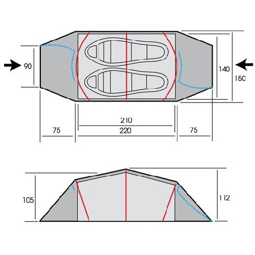 - Входы и вентиляция внутренней палатки продублированы противомоскитной сеткой;