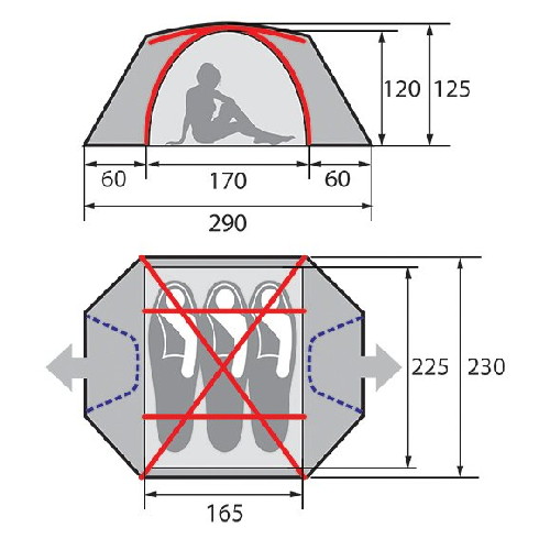 • Входы внутренней палатки продублированы противомоскитной сеткой