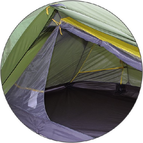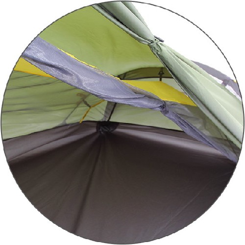 - Вентиляция внутренней палатки продублирована противомоскитной сеткой;