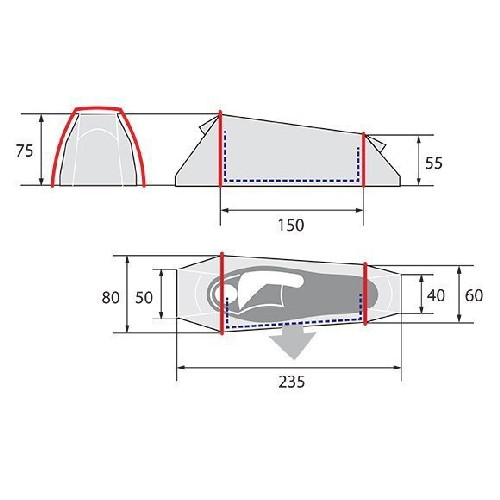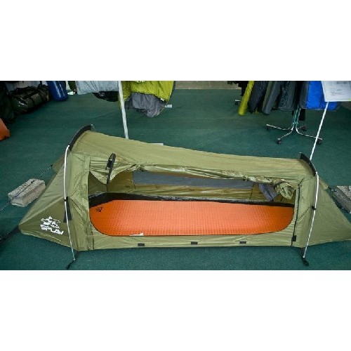 - Благодаря гнутым сочленениям дуг, объем палатки вполне комфортен для одного человека, при этом место для установки палатки потребуется немногим больше, чем занимает туристический коврик;