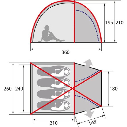 - Высота позволяет перемещаться внутри палатки в полный рост;