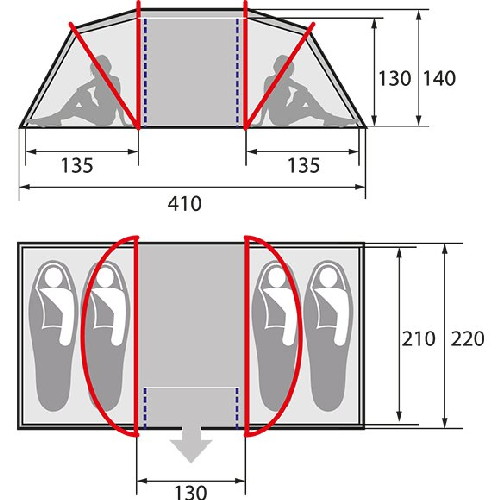 - Вход в тамбур и основную палатку продублирован противомоскитной сеткой;