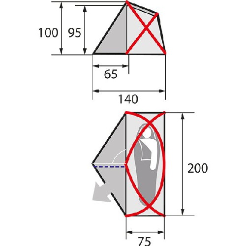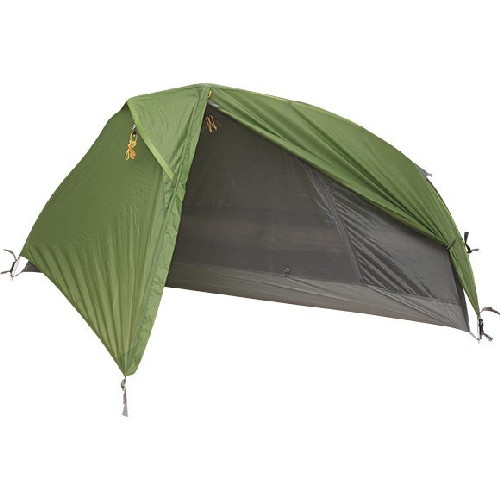 - Вход внутренней палатки продублирован противомоскитной сеткой, козырек вентиляции над входом дополнительно служит защитой от дождя;