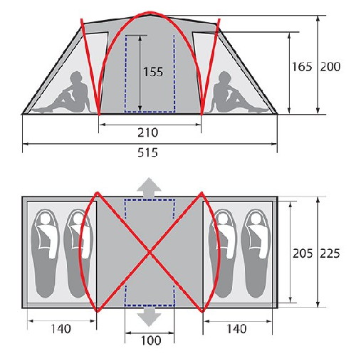 - Высота позволяет перемещаться внутри палатки в полный рост;