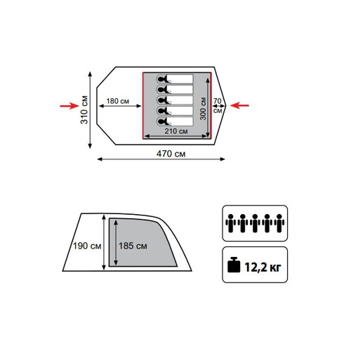 Внешний размер (ДxШxВ) | 310x470х185 см |
