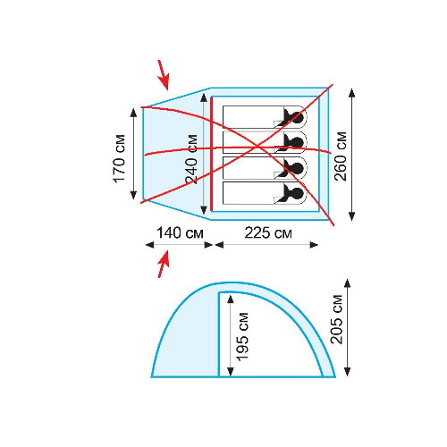 Материал внутренней палатки | полиэстер (Ripstop) |