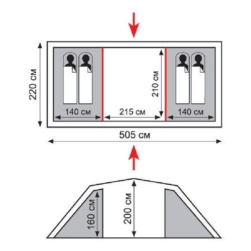 Внутренний размер (ДxШxВ) | 210x140x200 см |