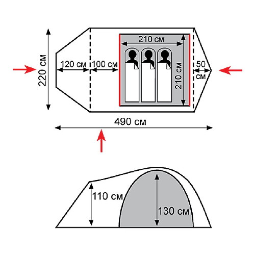 Внутренний размер (ДxШxВ) | 210x210x130 см |