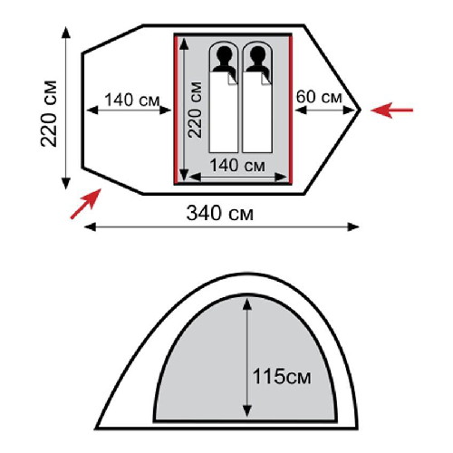 Два входа обеспечивают превосходную вентиляцию и комфортный сон в теплое время года.