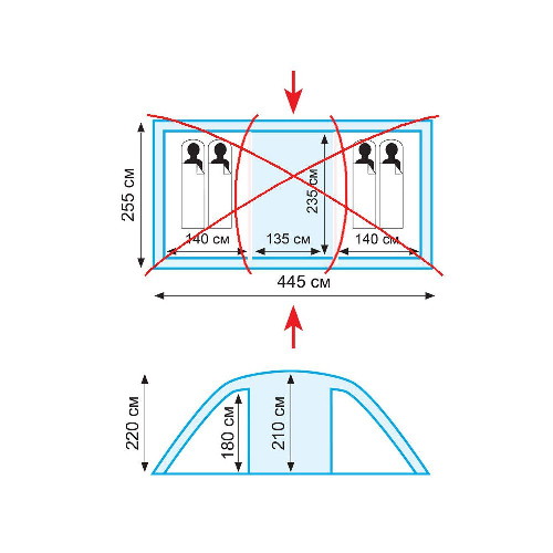 Внутренний размер (ДxШxВ) | 235х140х210 см |
