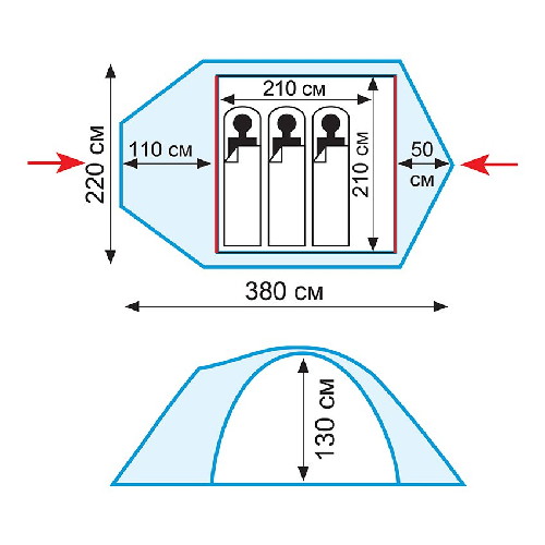 Внутренний размер (ДxШxВ) | 210x210x130 см |