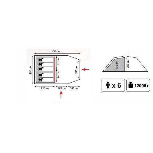 Внутренний размер (ДxШxВ) | 215x280x160 см |