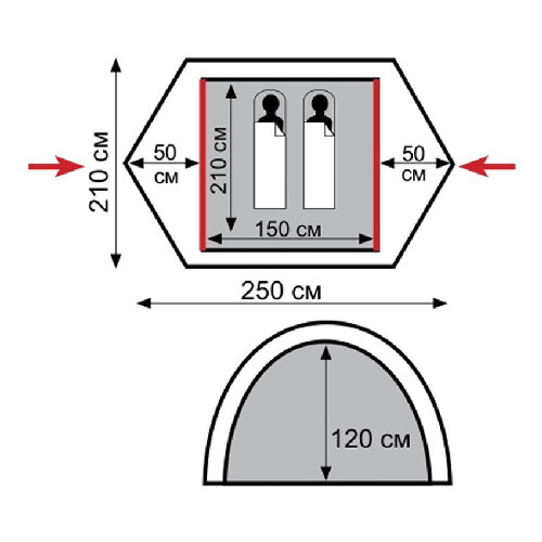 Внешний размер (ДxШxВ) | 250х210х120 см |