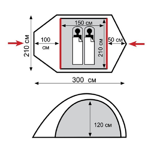 Два входа обеспечивают превосходную вентиляцию и комфортный сон в теплое время года.
