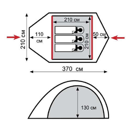 Два входа обеспечивают превосходную вентиляцию и комфортный сон в теплое время года.