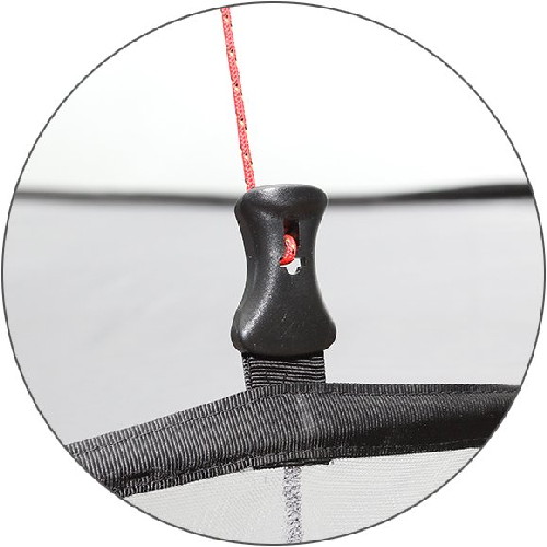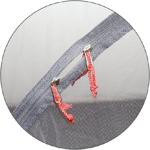 - Четыре оттяжки и зажимы в верхней части полога позволяют подвешивать его на ветки деревьев или другие верхние опоры;