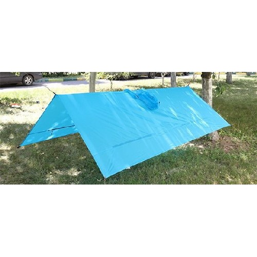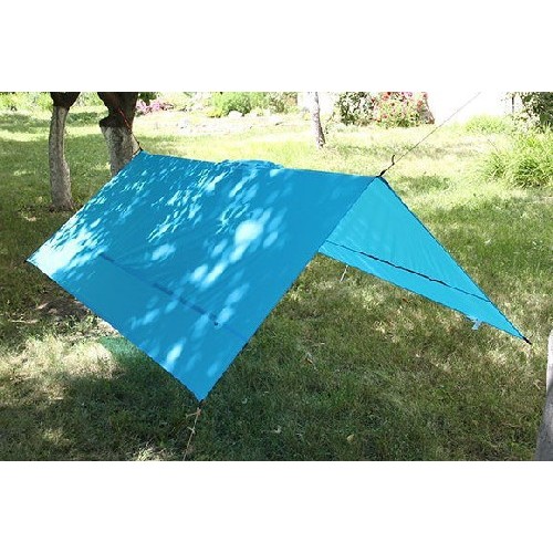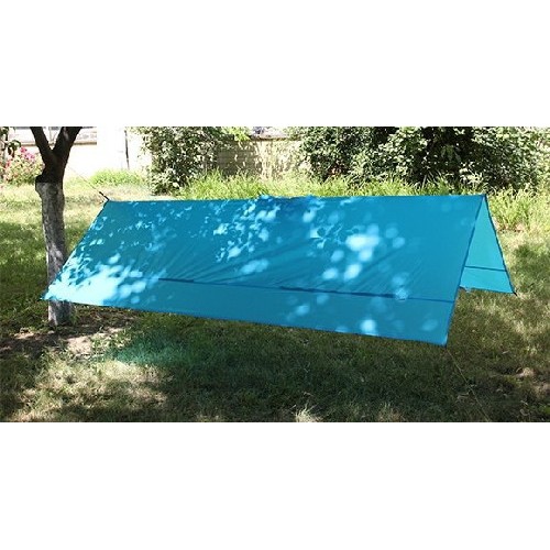 - Для установки тента можно воспользоваться трекинговыми палками или растянуть его между стволами деревьев.