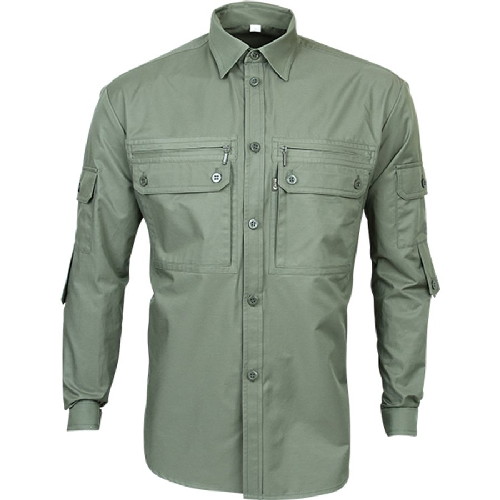 Вместительные нагрудные карманы на молнии, поверх которых пришиты карманы с клапанами на пуговицах
