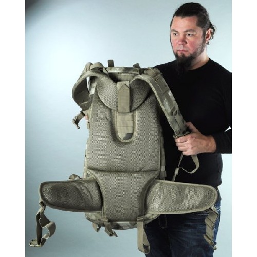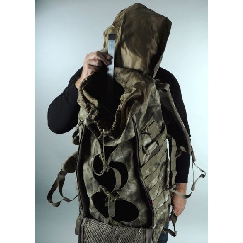 Доступ к вещам в главном отделении может осуществляться как через верхний штормовой клапан, защищённый большим капюшоном, так и через открывающуюся переднюю стенку. Поверхности, соприкасающиеся с телом, отделаны специальным, вентилируемым материалом, смягчающим и равномерно распределяющим нагрузку. Кроме того, панели MOLLE на всей поверхности рюкзака, расширяющие возможности рюкзака для крепления дополнительного снаряжения.
