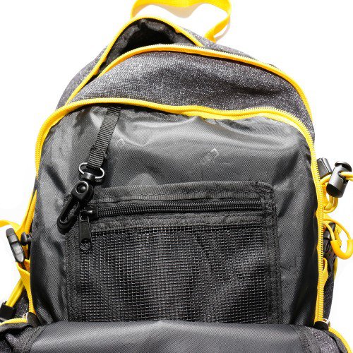 Внутренний объем рюкзака разделен на два отсека. Спереди находится плоский карман для хранения мелких предметов.