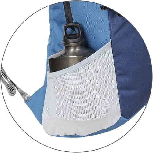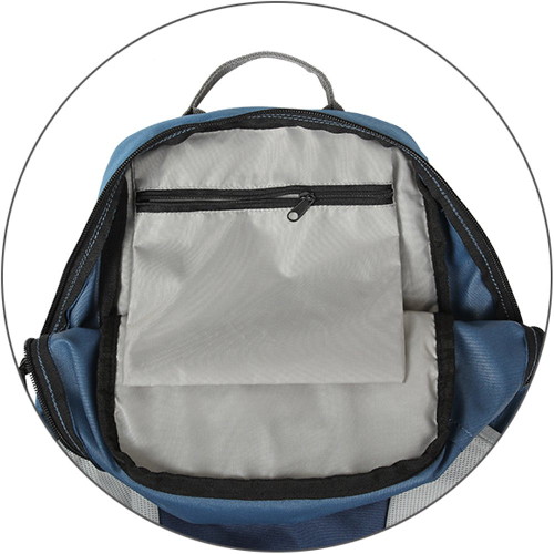 Рюкзак имеет одно основное отделение, закрывающееся на молнию. Внутри предусмотрен карман для самых нужных мелочей. Один большой карман имеется и снаружи. Карманы из сетки расположены по бокам. Спинка у рюкзака мягкая, нести за спиной его очень удобно. Облегчает погрузку рюкзака в багажник особая удобная ручка сверху.