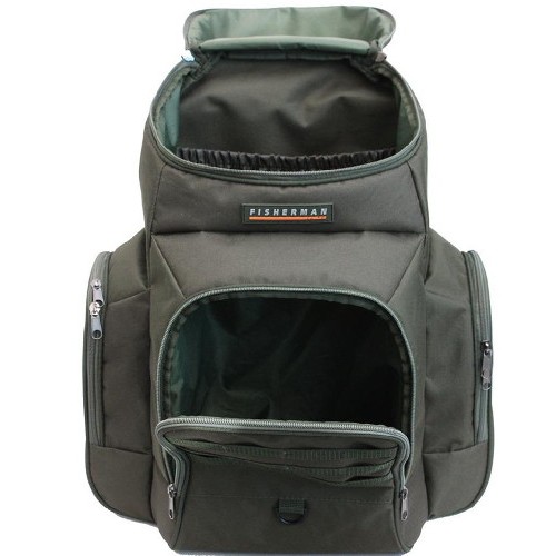 Рюкзак Fisherman ФС08 изготовлен из плотной, стойкой к истиранию ткани. По бокам рюкзака расположены 2 объёмных кармана на молнии и 1 на лицевой части.