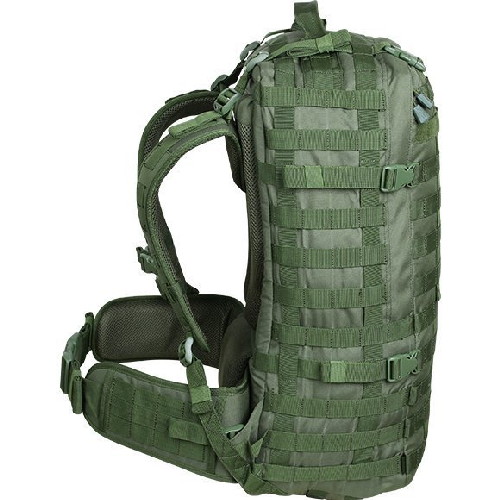 - Съемный широкий пояс. Боковые оттяжки, ячейки MOLLE для навески подсумков