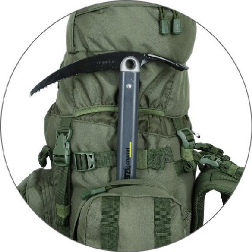 - Съемный широкий пояс. Боковые оттяжки, ячейки MOLLE для навески подсумков