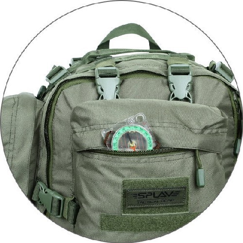 - Позади переднего кармана для котелка расположен скрытый плоский карман со входом сверху для переноски МПЛ рукояткой вниз. На дне кармана имеется прорезь для рукоятки лопаты
