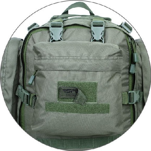 - Передний объемный карман на молнии с габаритами, рассчитанными на отечественный армейский котелок (также подходит под ШАК). На карман нашиты липучки для крепления именных лент и шевронов. В комплекте съемный логотип на липучке
