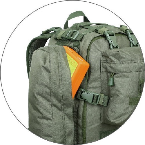 - Свободная внешняя площадь под передним карманом ранца обшита стропами MOLLE
