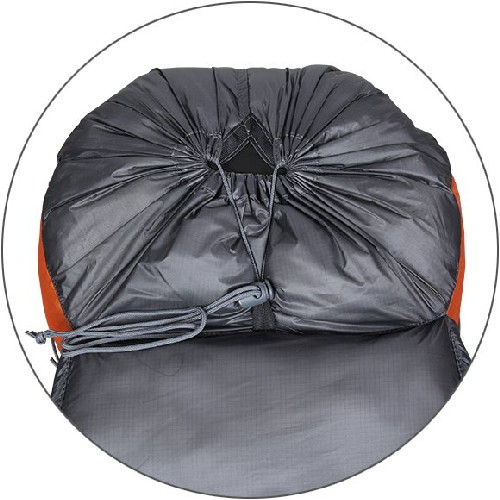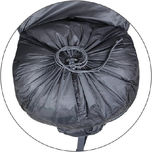 - Тубус затягивается одним движением при помощи эластичного шнура с фиксатором, который в свою очередь может быть заправлен в петлю