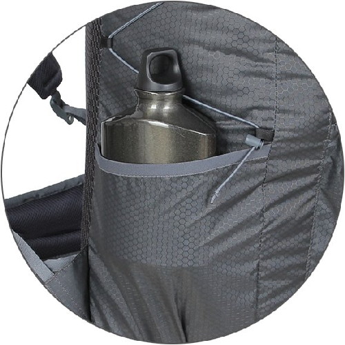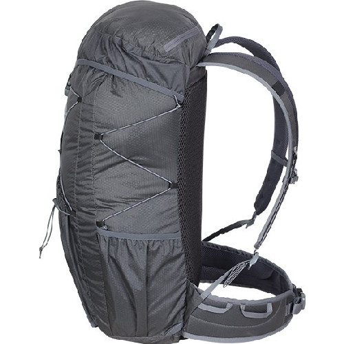 Снижение веса рюкзака достигается путем использования для его изготовления прочной, легкой ткани 100% Nylon HONEYCOMB с двухсторонним силиконовым покрытием (3000 мм. вод.ст.) и выверенной конструкции. Вес ткани составляет 95 г/м2
