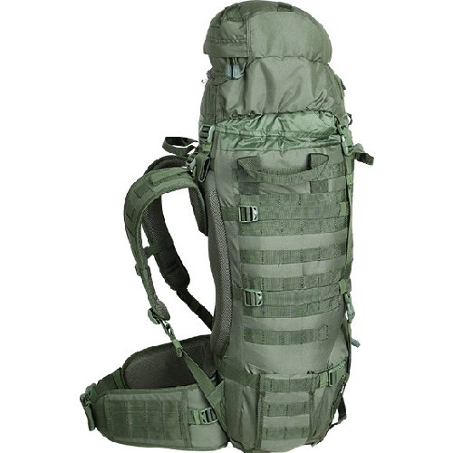 - Съемный широкий пояс. Боковые оттяжки, ячейки MOLLE для навески подсумков
