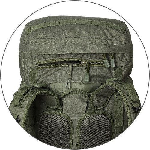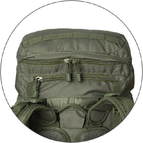 - Передняя площадь рюкзака обшита стропами PALS/MOLLE для навески дополнительных подсумков