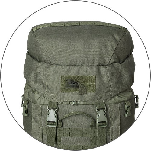 - На боках рюкзака нашиты вертикальные 20 мм фастексы и крупные тракторные молнии для быстрой установки/демонтажа съемных карманов
