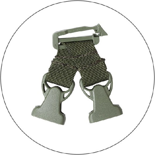 - В комплекте идут два съемных грудных крепления карманов, каждое в виде разъемной двухщелевой пряжки с двумя пришитыми к ней 20 мм фастексами. Крепления устанавливаются на верхние оттяжки лямок