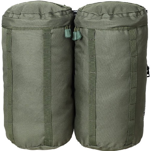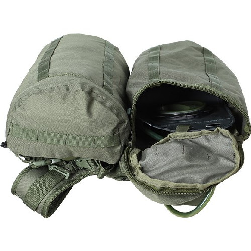 На задней стенке каждого кармана нашиты крепления для различных вариантов переноски – вертикальные тракторные молнии, два регулируемых 20 мм фастекса сверху и два полукольца снизу: