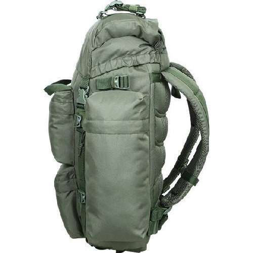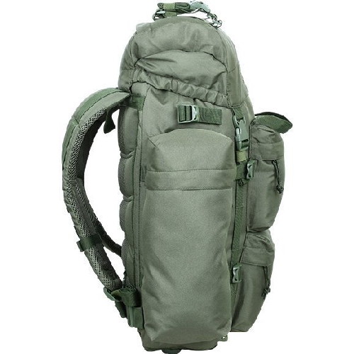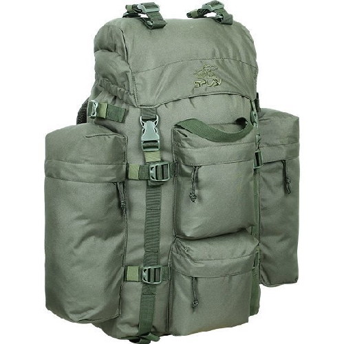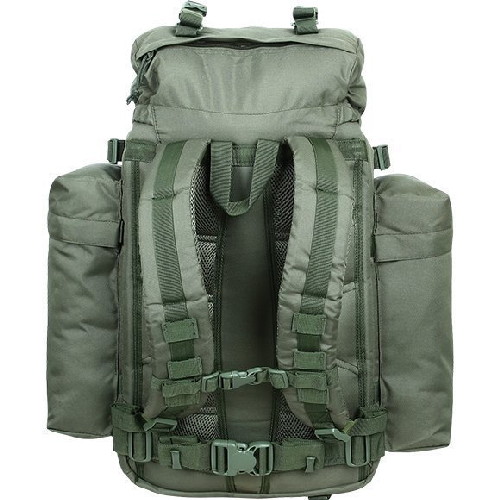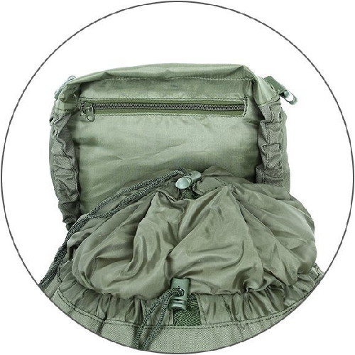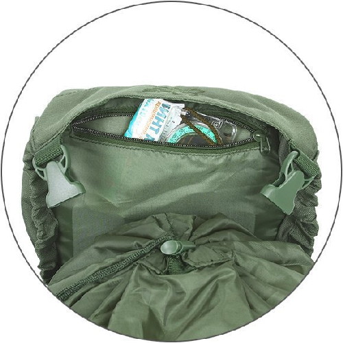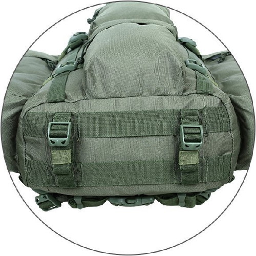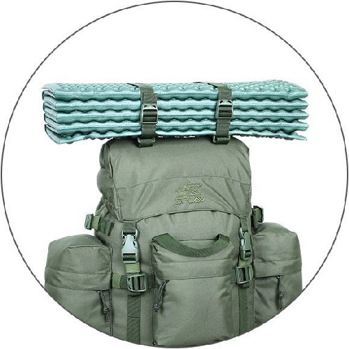 • Боковые карманы рюкзака пришиты только по вертикальным краям, так что между ними и рюкзаком образуются плоские отделения со входом сверху для переноски длинномерных грузов. Выше карманов нашиты утяжки для надежного закрепления этих грузов