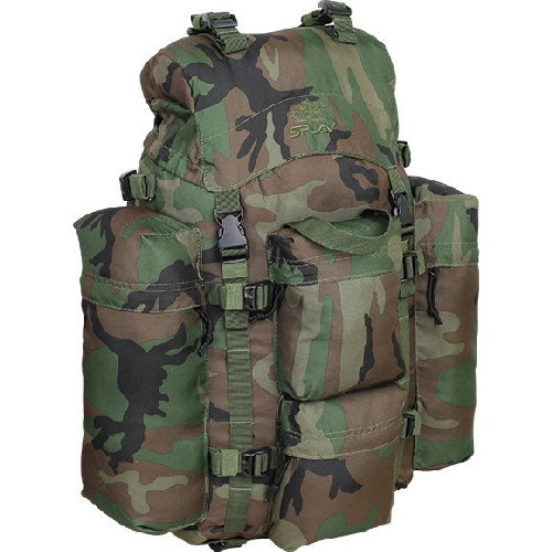- Боковые карманы рюкзака пришиты только по вертикальным краям, так что между ними и рюкзаком образуются плоские отделения со входом сверху для переноски длинномерных грузов. Выше карманов нашиты утяжки для надежного закрепления этих грузов