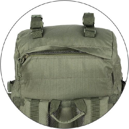 - На верх клапана нашиты однощелевые пряжки для крепления дополнительного груза. Съемные крепежные стропы в комплекте