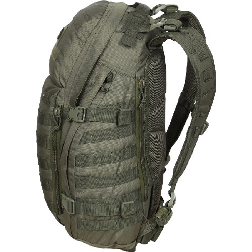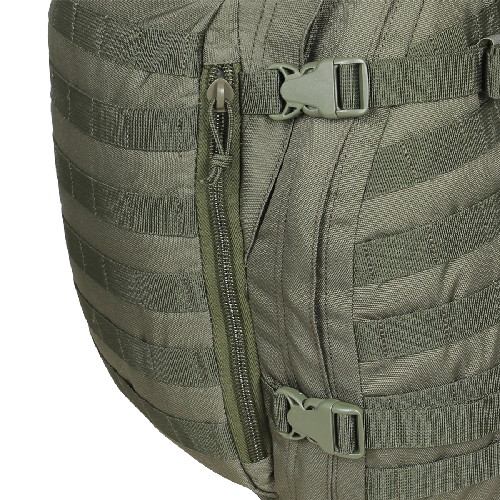 - Два боковых кармана на молниях, габариты прекрасно подходят для переноски бутылок. Обшиты стропами PALS/MOLLE (максимум 4 ячейки в ширину)