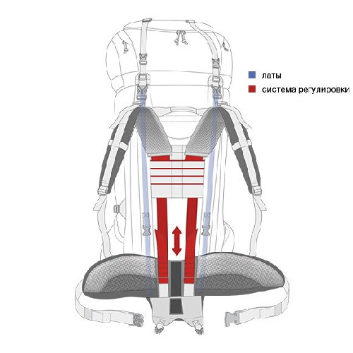 - Профилированные дюралевые латы. За счет специального профиля лат рюкзак обретает повышенную жесткость при меньшем весе