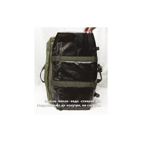 Объём 90 л. Прочное масло-бензо-водостойкое дно. Оно не протечёт изнутри и не промокнет снаружи. Благодаря этому в сумке можно везти грязные, мокрые вещи, мясо и просто бросить её, например, в багажник или кузов автомобиля и не беспокоиться о протечках.