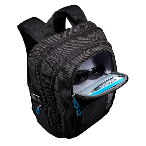 - В основном отделении находится приподнятый мягкий чехол для 15" MacBook Pro® с надежным фиксирующим ремнем для ноутбука и чехол для iPad®