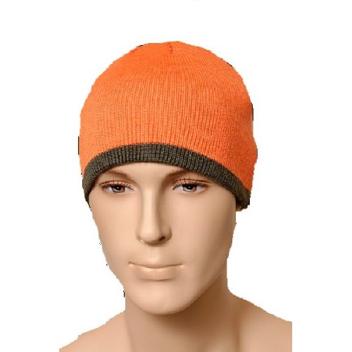 Шапочка трикотажная. Особенность данной модели: одна сторона оранжевая, вторая - зеленая. Это позволяет использовать данную модель на загонной охоте.