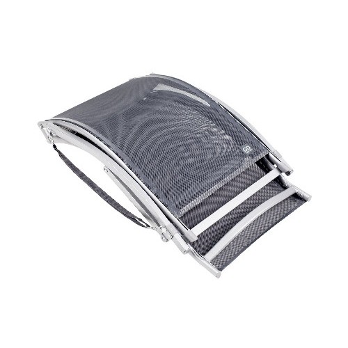 Анатомическая форма сиденья шезлонга обеспечивает прекрасную поддержку спины и ног. Сиденье сделано из сетчатого материала TEXTILENE устойчивого к ультрафиолетовому излучению и образованию плесени. Благодаря своей структуре материал не впитывает влагу, быстро сохнет и очень простой в уходе. Шезлонг можно хранить на открытом воздухе в течение всего сезона. В сложенном состоянии не занимает много места, имеет удобную лямку для переноски.