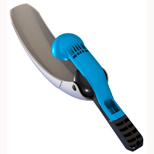 Конструкция состоит из двух разных по величине рожков. Длинный служит для зачерпывания снега, маленький – для формирования снежка. На ручке есть противоскользящие насечки. Даёт возможность бросить снежок дальше, чем просто «от руки». Снежкометатель изготовлен из лёгкого прочного морозостойкого пластика.