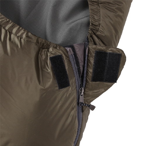 Неразъемная молния до половины спальника с утепленной планкой экономит вес, и при этом достаточно удобна для использования.